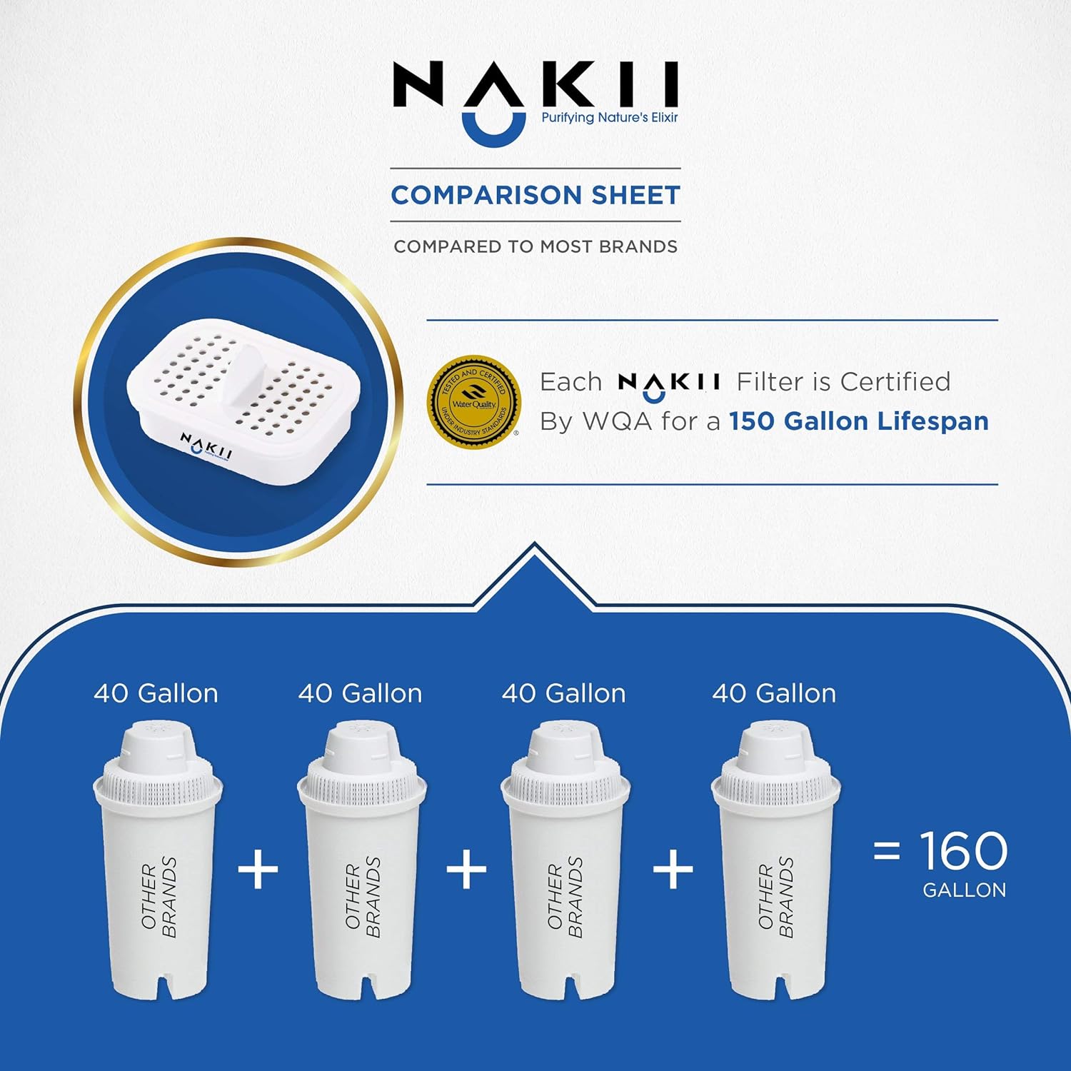 FRESH CLEAN WATER, FAST– The Nakii promise! Within ONE MINUTE you will have 1.3 Liters of freshly filtered, delicious water—pure and unlike with our competitors’ filters, water with no black specks! We guarantee it!