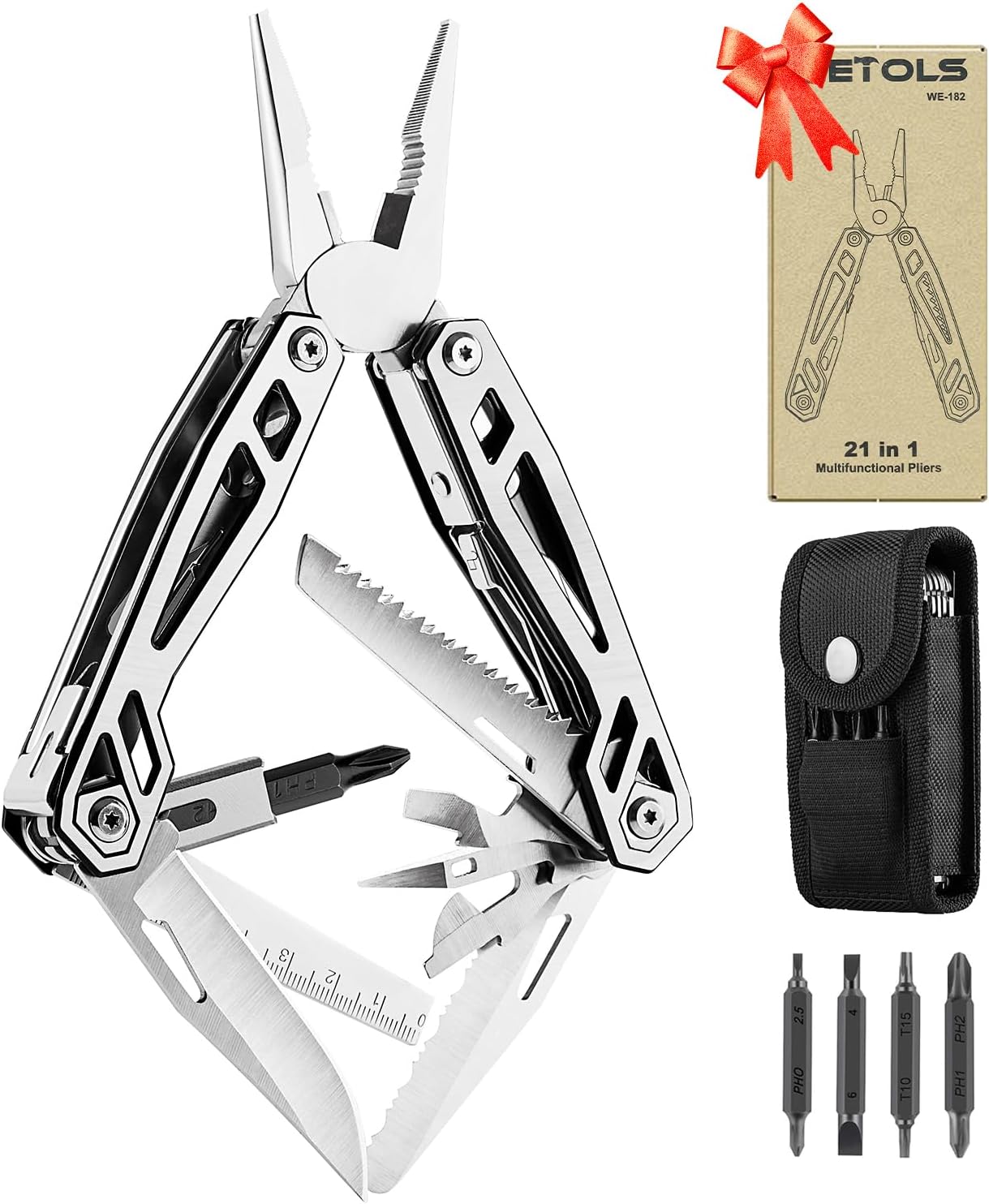 WETOLS Multitool Needle Nose Pliers,21-in-1 Stainless Steel Multi Tool Pocket Knife with Screwdriver Sleeve,Self-locking Survival Knife with EDC Pouch-Great for Outdoor, Simple Repair, Camping, Hiking