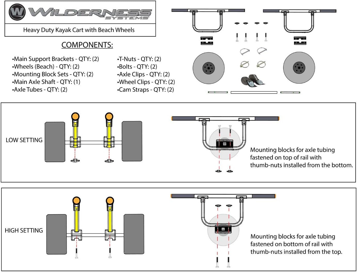Two height options – high for odd shaped hulls that would usually rub on cart wheels, low for a lower center of gravity to prevent tip overs