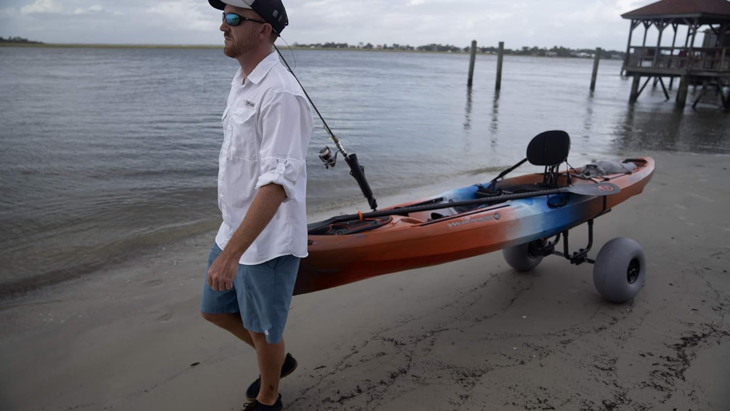Fishing kayak owners and paddlers with heavy loads now have an award-winning product to transport their kayak. This workhorse cart will transport up to 330 pounds with ease and comes with balloon-style beach wheels that will never go flat. All-terrain wheels (sold separately) can be swapped onto the same frame and increase the carrying capacity to 450 pounds. It is also easy to load and unload the kayak – no kickstands or scupper posts required – and two included security straps prevent the kayak from slipping. Cart is collapsible for storage and can fit into larger kayak hatches. The heavy duty cart is constructed of marine-grade, High-strength, Heat-Treated aluminum alloy for superior strength.
