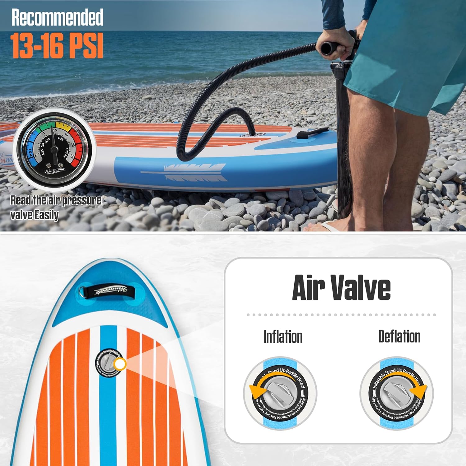 ๐ใ๐๐ช๐ข๐๐ฃ๐๐ฏ๐๐ ๐ฟ๐๐จ๐๐๐ฃใ: The large-capacity backpack allows you to carry the entire equipment wherever you want easily. The hand pump can be used wherever you go. Two handles on the paddleboard make it easy to tow it in and out of the water. Carry your paddleboard with the shoulder straps for easy portability on unfriendly terrain. 11 D-rings on the board can be used to install a kayak seat for fishing, secure a cooler, or connect to other inflatable Sups through these D-rings.