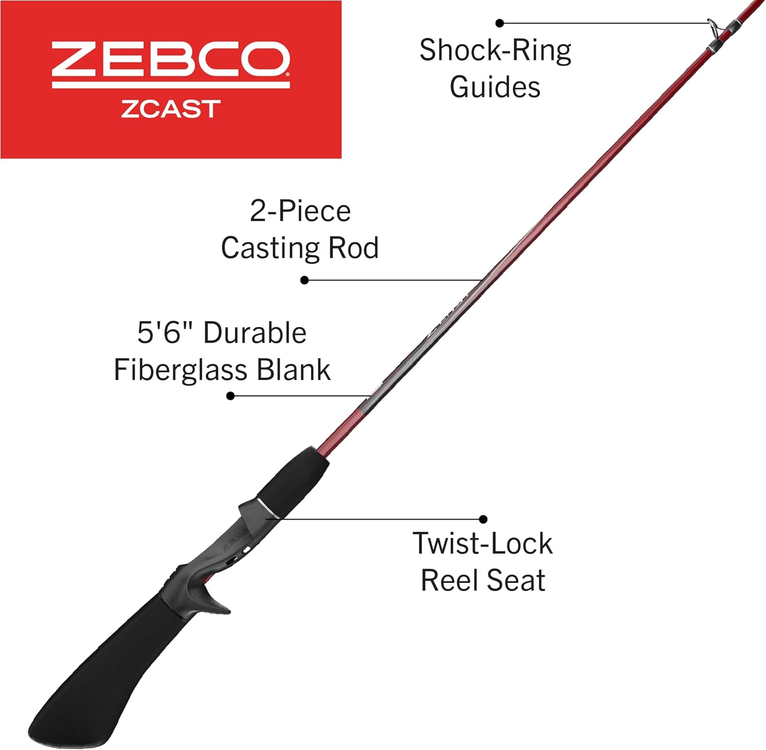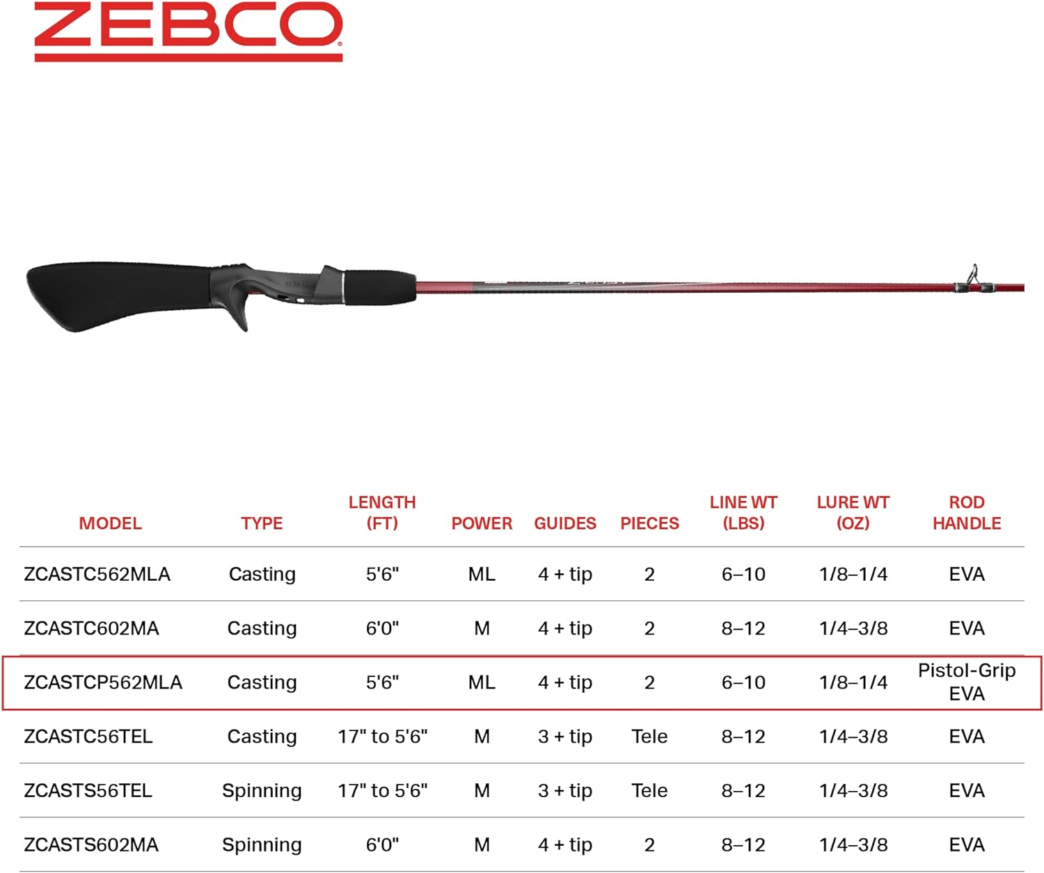 ALL-DAY COMFORT: Zebco’s Z-Cast casting rod is a 5-foot 6-inch 2-piece fishing pole that features a balanced pistol-grip EVA rod handle that reduces grip-fatigue so you can fish comfortably for longer